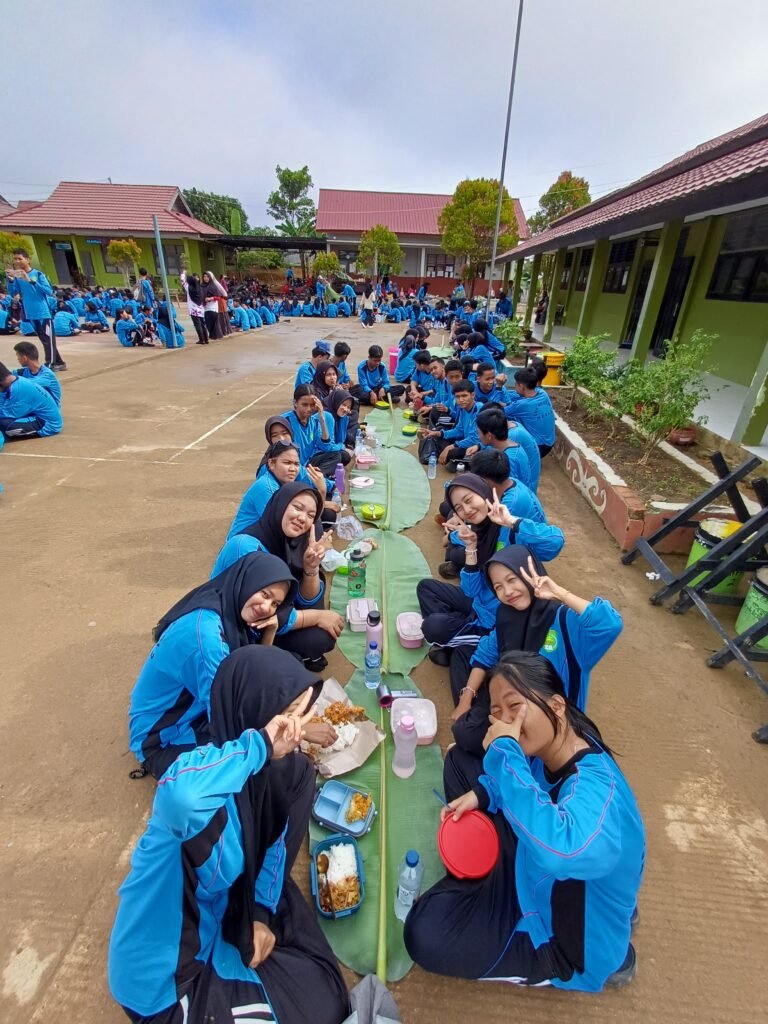 Setelah menyelesaikan rute jalan santai, seluruh peserta berkumpul kembali di halaman sekolah untuk mengikuti kegiatan makan sehat bersama. Kegiatan ini dilaksanakan sebagai bagian dari program sekolah dalam mendukung Gerakan Sekolah Sehat. Selain itu, kegiatan juga menjadi sarana penyegaran setelah siswa menyelesaikan berbagai aktivitas pembelajaran dan praktik kejuruan. Dengan suasana santai namun tetap tertib, para siswa terlihat antusias mengikuti seluruh rangkaian acara.